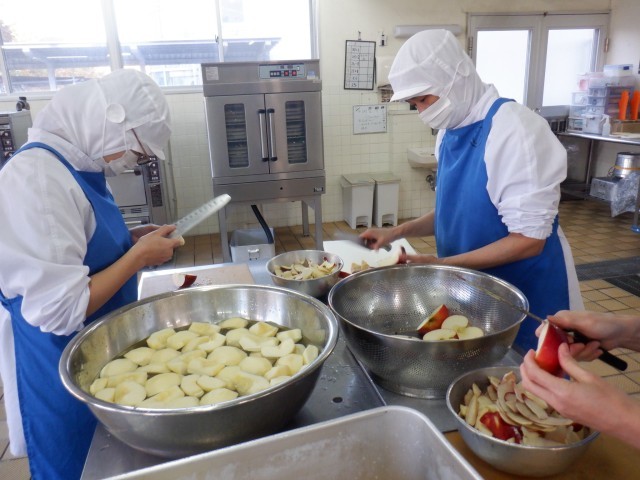 *ポムポムはフランス語でりんごのことです。旬のりんごを切っているところ・・・写真2枚目