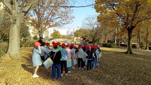 様々な音や様々な色の葉や落ち葉を見つけました。