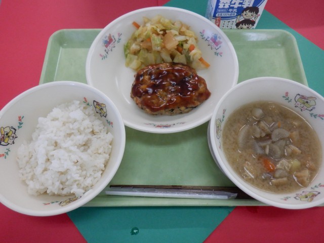 *旬のれんこんをハンバーグの中に入れ込みました。