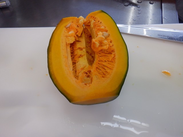 *八王子産有機栽培の「万次郎かぼちゃ」を使用して作りました。ラグビーボールのような形をしています。とても甘いおいしいかぼちゃでした。