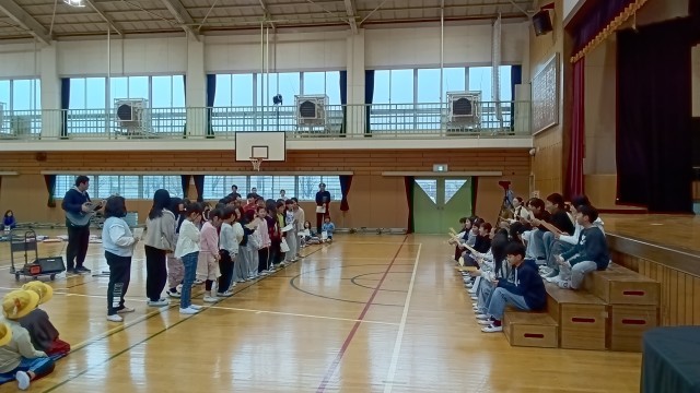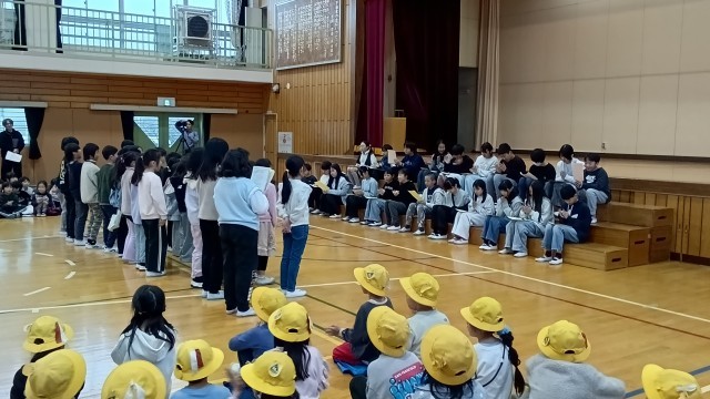 写真は3年生が担任の先生のギター演奏に合わせて、オリジナル曲を披露しました。