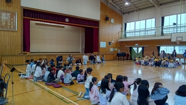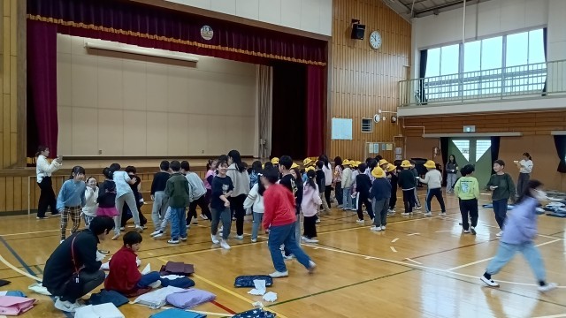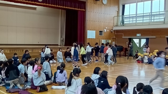 先ずは4・5年生と、その後、1・2・3年生と行いました。何人か先生も参加していました。