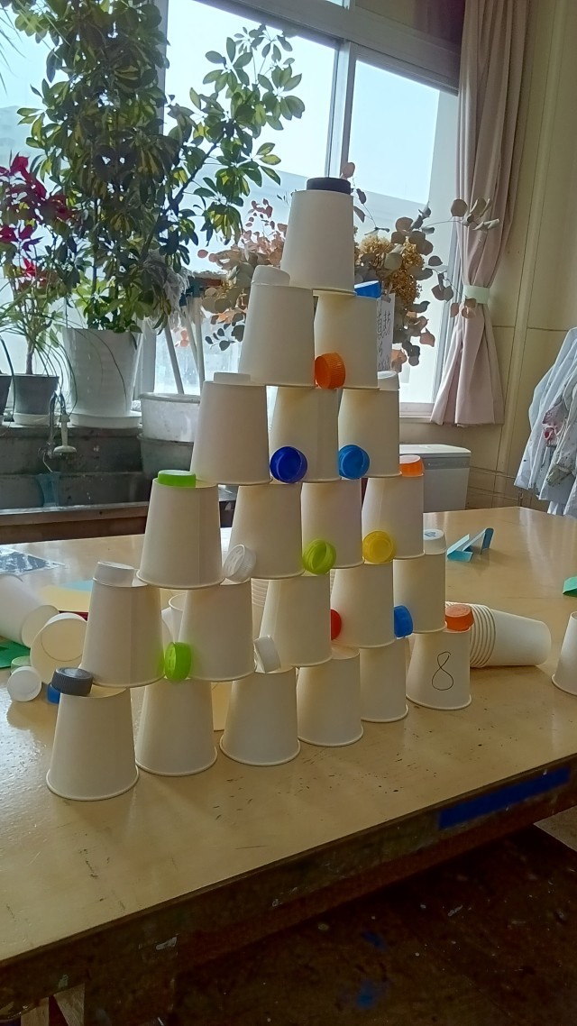 作品展でも活躍していた紙コップ。それを活用して立体的な創作を自由に行いました。