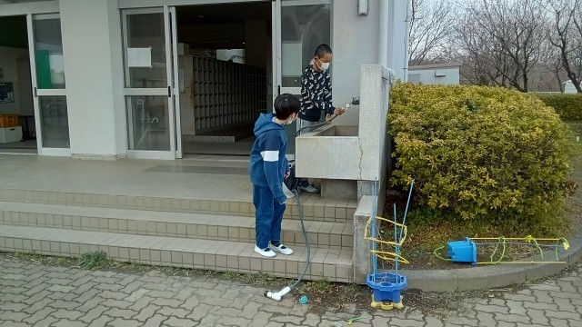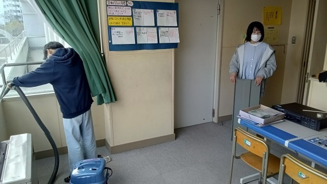 昨日は校舎内を中心に、本日は校庭や畑、体育館を主に清掃しました。