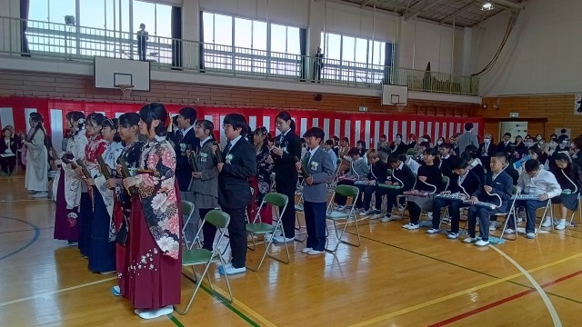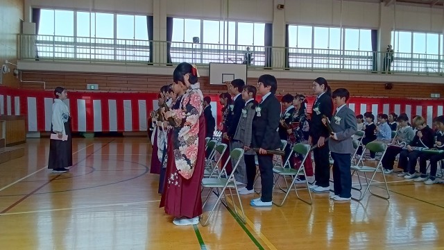 卒業生からバトンをしっかりと受け継いだ5年生の演奏で、卒業生が一人ひとり退場します。