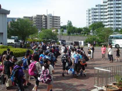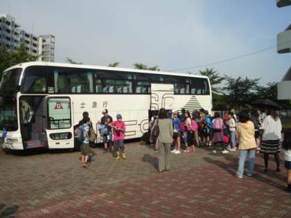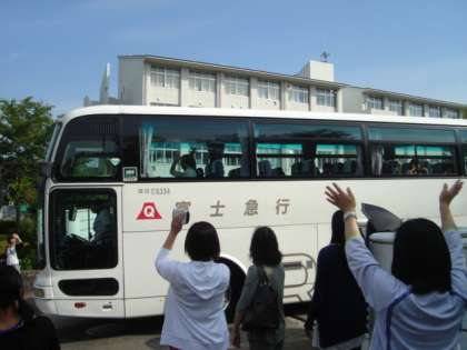 出発式を終え、バスに乗り込みます。