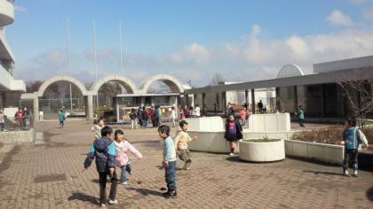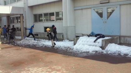 昨晩からの雪で、一面雪景色でしたが、昼休みにはほとんどとけ、中庭で遊ぶことができました。
