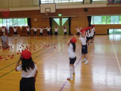 1年生の玉入れは、ただかごに玉を入れればいいというわけではありません。