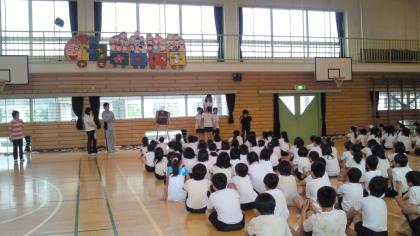 まず6年生が騎馬の組み方のお手本をしめしてくれました。さすが6年生!力強く見えます。