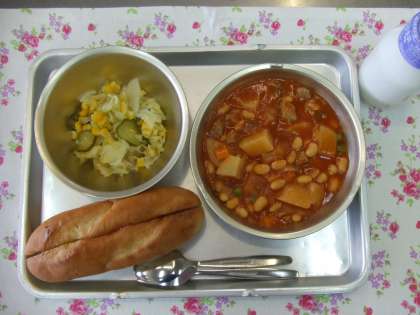 ポークビーンズは、大豆・野菜が入って栄養たっぷりです。