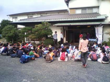 宿舎を出発する前の閉校式です。お世話になりました。ありがとうございました。