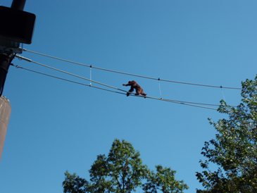 画像は、オランウータンのスカイウォークのようすと、それを見上げる子供たちのようすなどです。
