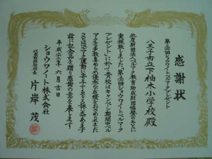 ショウワノートから感謝状が届きました。