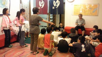 今日は校長先生から入浴のしかたについて、お話がありました。みんなで入るお風呂のマナーを学び、実践です。