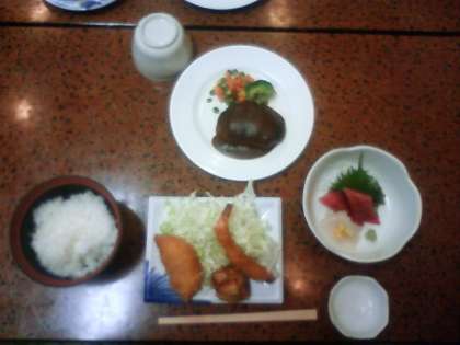 今日の晩ご飯です。この他に地引網でとれた魚のお刺身もあります!