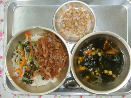今日は、韓国料理の「ビビンバ」を給食用にアレンジしました。