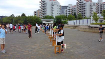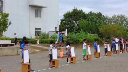 クラス全員リレー形式で担任の先生の顔をかいていきます。