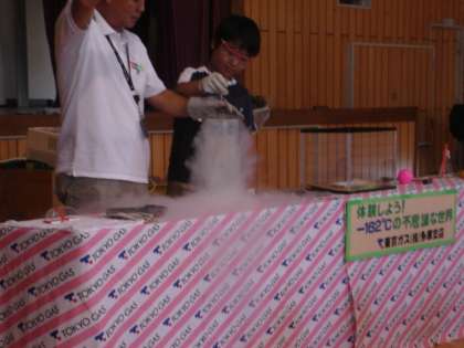 カラーボールを液化窒素に入れてみると、