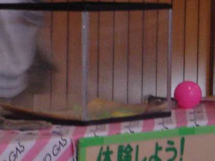 カチカチに凍ったボールを水槽に落としてみると・・・。