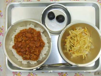 チリコンカンライスは、挽肉・みじん切りにした野菜を煮込んで