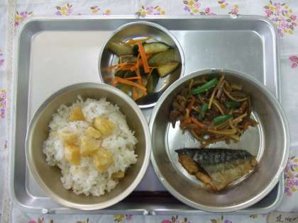 今日は、秋の味覚「くり」を使って栗ごはんを作りました。