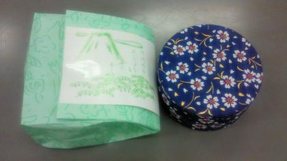 自分たちで手揉みしたお茶を、素敵な缶に入れていただき、おうちに持って帰りました。