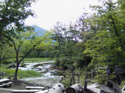 歩き始めて1時間。泉門池で休憩。涼しくて快適!