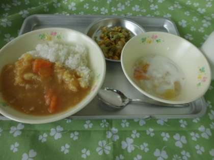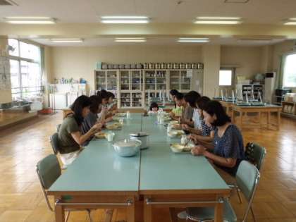 今日は、給食試食会でした。給食室の手作りルーで作ったカレーなどを皆さんに試食していただき、教室の給食時間の様子を見ていただきました。