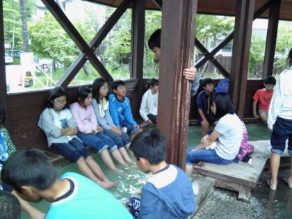 足湯なう。メッチャ熱い!