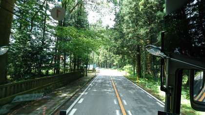 12時10分、日光の杉並木の中を走っています。
