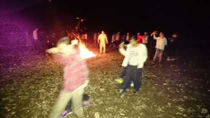 ちょっと照れながら、オクラホマミキサーを踊っています。