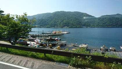 中禅寺湖を右に眺め、もうすぐ博物館に到着です。