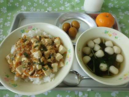 ★マーボー丼 ★水菜スープ ★うずらのカレー煮
