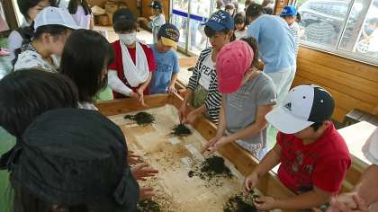 こちらでは、茶もみの体験です。手作りの味を、是非、ご家庭で楽しんでください。