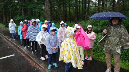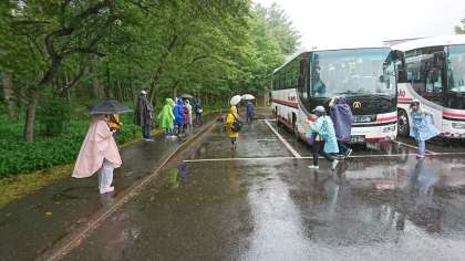 赤沼に到着しました。カッパを来て、これから龍頭の滝に向けて出発します。