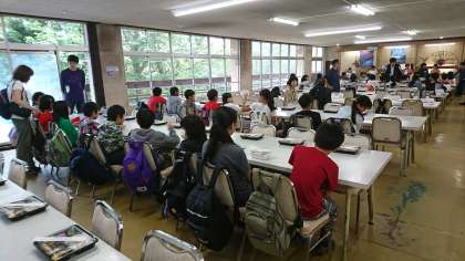 子どもたちは元気です。雨のため、当初の予定を入れかえていますが、臨機応変に行動しています。