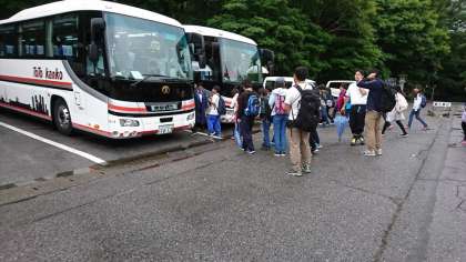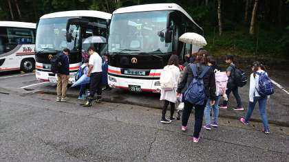昼食会場を後にし、次の目的地「日光自然博物館」に向かいます。雨はざーっと降ったり、止んだりしています。