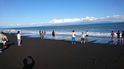 波とたわむれる子どもたち…。