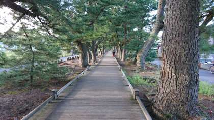 「神の道」を通って、子どもたちはバスへ。解放感にあふれた波うちぎわで、何名かは靴を濡らしてしまいました。