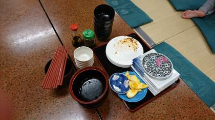 夕食がすむと、片付けを自主的に始めました。どの班も見事です。