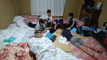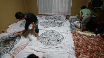 ふとんを敷き、自由な時を過ごしています。