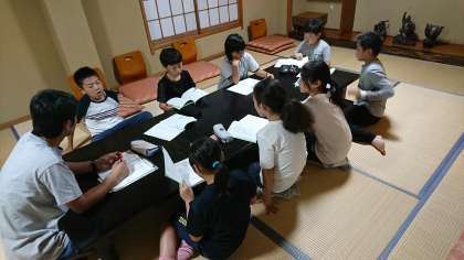 7時45分、室長会議の時間です。1日を振り返り、宿舎の生活をよりよいものにしようと、打ち合わせをしています。