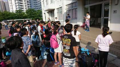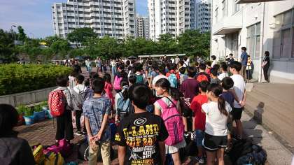 きちんとした態度で臨んだ出発式。見送りの方々に元気よく「行ってきます」の言葉を届けました。