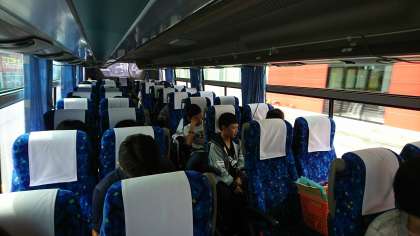 9時10分、高速をおりました。子供たちは、バスレクに夢中です。
