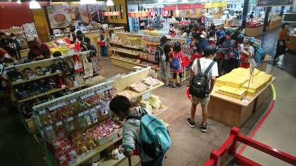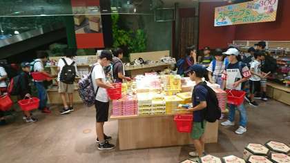 日光で楽しみにしていた、お土産の時間。店内を巡り、どれにしようかと笑顔で悩んでいます。