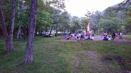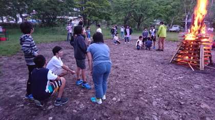 レクが始まりました。和気あいあいと炎を囲んでいます。