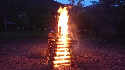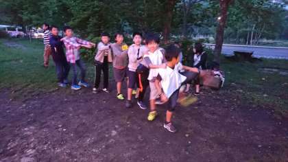 次は部屋ごとに集まり、ジェンカです。汗だくになって、跳び跳ねています。