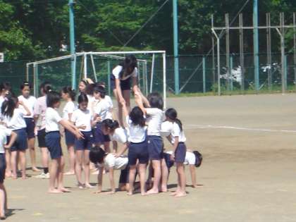 5時間目は5・6年生合同で組体操の練習をしていました。