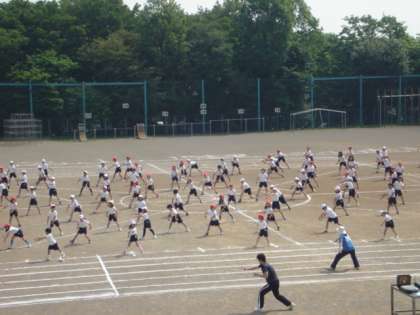 1時間目、3・4年生が合同でソーラン節の練習をしていました。