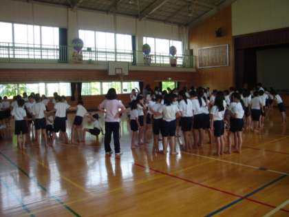 今日の5時間目、5・6年合同の練習が体育館でありました。